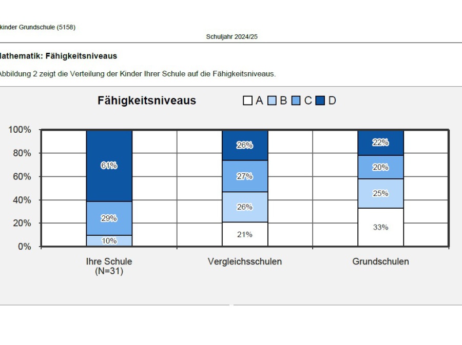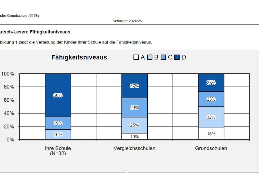In Jahrgangsstufe 2 werden die Kinder in vier Kompetenzstufen eingeteilt und verglichen. Dabei wird darauf Rücksicht genommen, dass Schulen/Kinder es je nach Lage