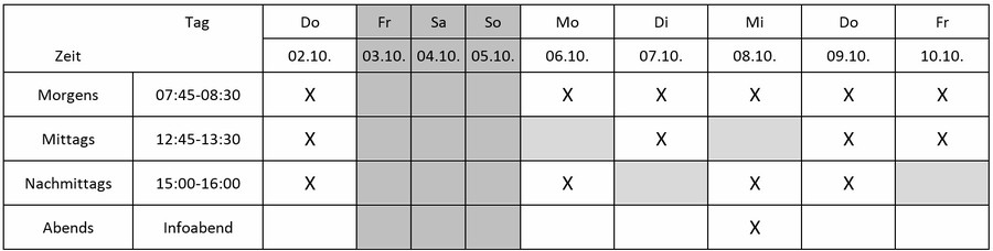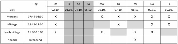 Verkaufzeitentabelle zum Vergrößern bitte anklicken!